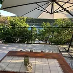 אורחים של נכס זה יכול להרפות במרפסת וליהנות מהנופים של גינה.